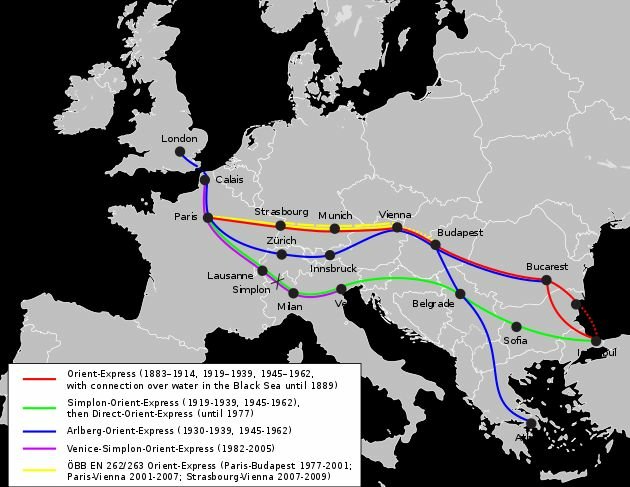 Görsel: Şark Ekspresinin reklam posteri (Jules Chéret), Şark Ekspresinin çeşitli yıllardaki güzergahları (MissMJ)